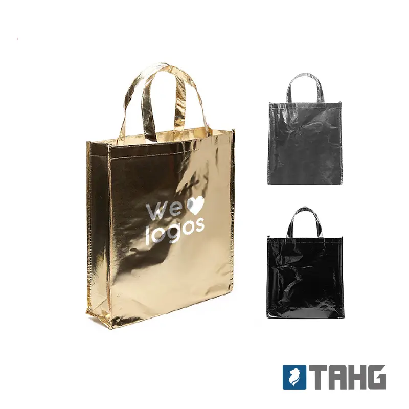 Realizada en Nonwoven Laminated Metallic. Manijas reforzadas. Medidas: 36 x 40 x 10 cm.; Capacidad: 14.5 Lt. Tahg