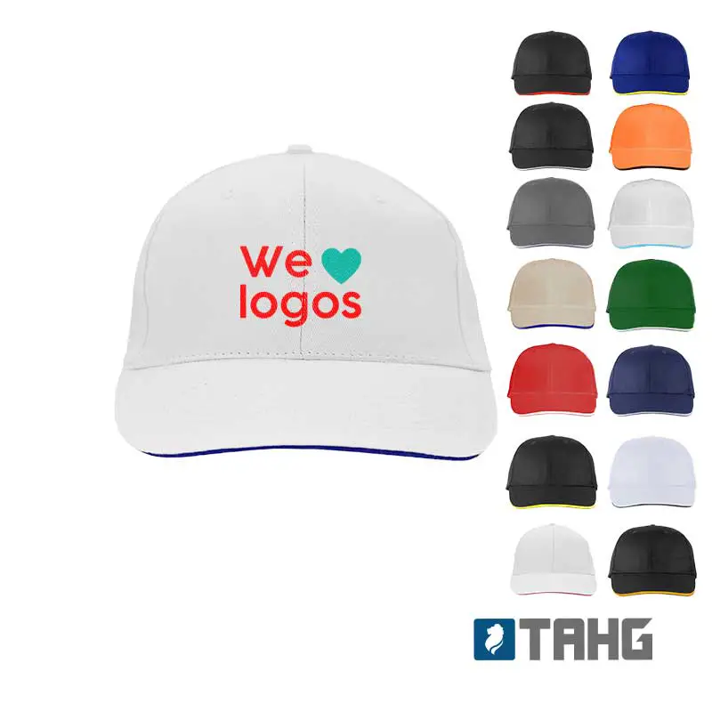 Gorro de gabardina de 6 paneles, con vicera tipo sandwich en colores combinados, y cierre con velcro. Material: 100% algodón. Tahg