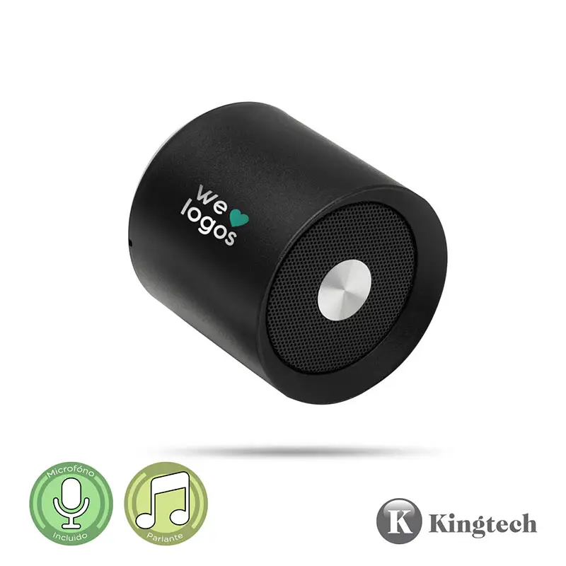 Parlante inalámbrico con micrófono y batería recargable USB. Medidas: 7 cm x Ø 6,8 cm. Kingtech