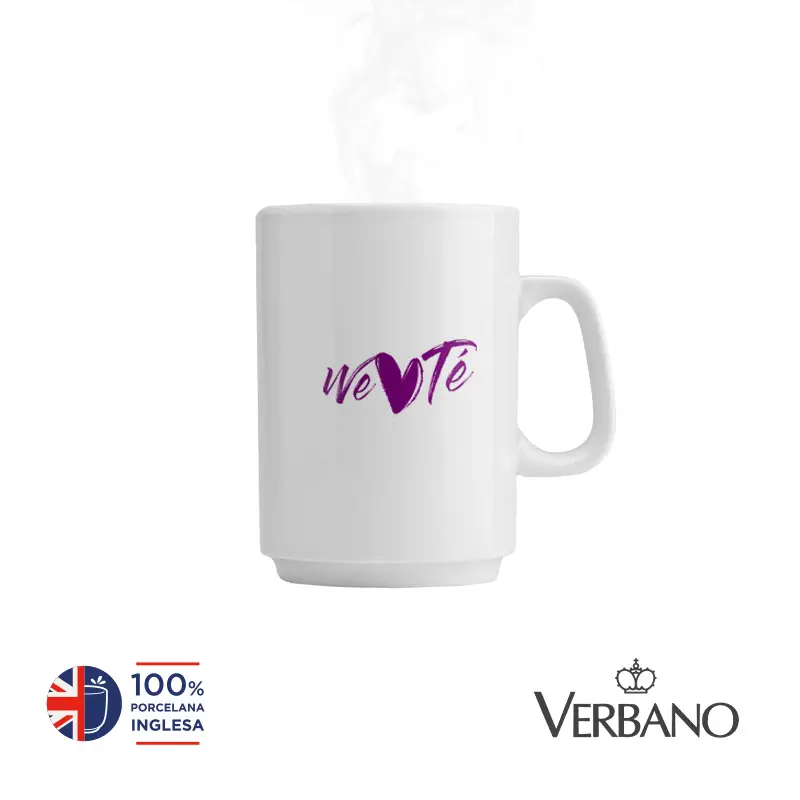 Taza de Porcelana recta con asa. Resiste altas temperaturas.